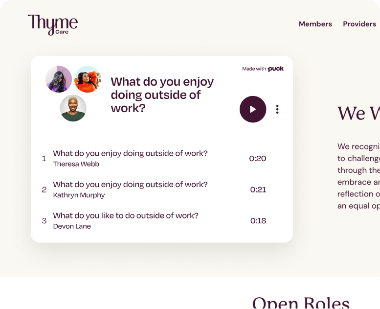 Puck works to give the most relevant information for candidates. By opening the door to include a wider range of stories than traditional content production, Puck is able to increase transparency to candidates, with software that points candidates in the right direction. Puck’s career site drives candidate quality.